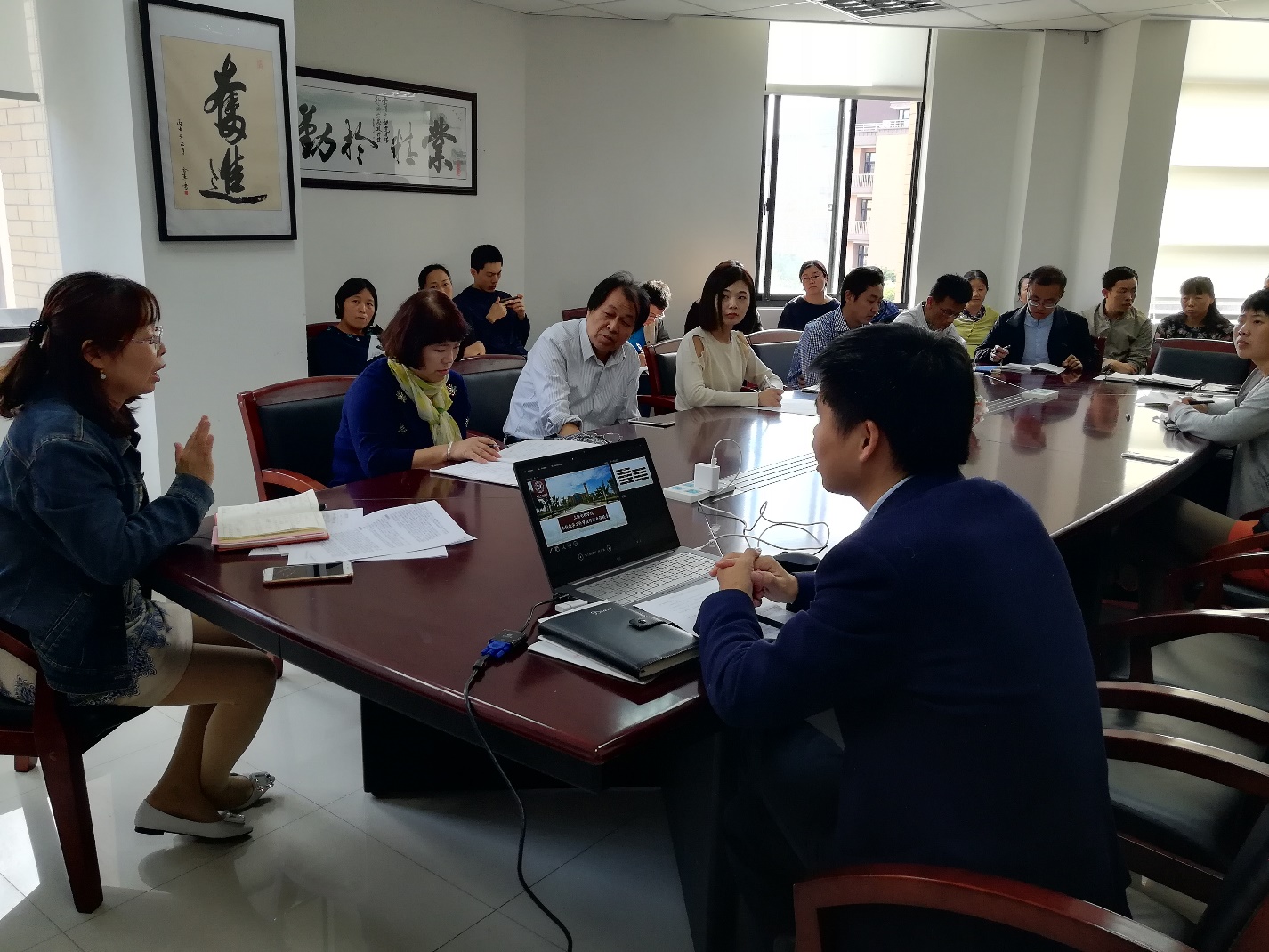 首先,袁艳红主任详细介绍了学校对本科教学审核评估的准备工作,再次强调了迎评促建的重要性,需要全体教职工认真对待。为顺利通过此次审核评估,学校相关职能部门和督导对教学部和老师进行了多次检查与听课,袁主任介绍了最近检查和听课的反馈情况,希望教学部老师能够再接再厉上好每一堂课,准备好每一份教学材料。接着,赵华老师详细讲解了学校的自评报告,强调了每一处需要注意的评估内容、评估步骤和评估重点,让教学部全体教职工对此次本科教学审核评估有了更加深入的认识。