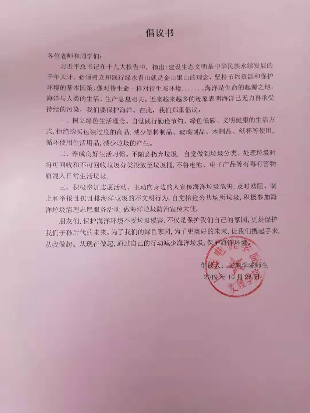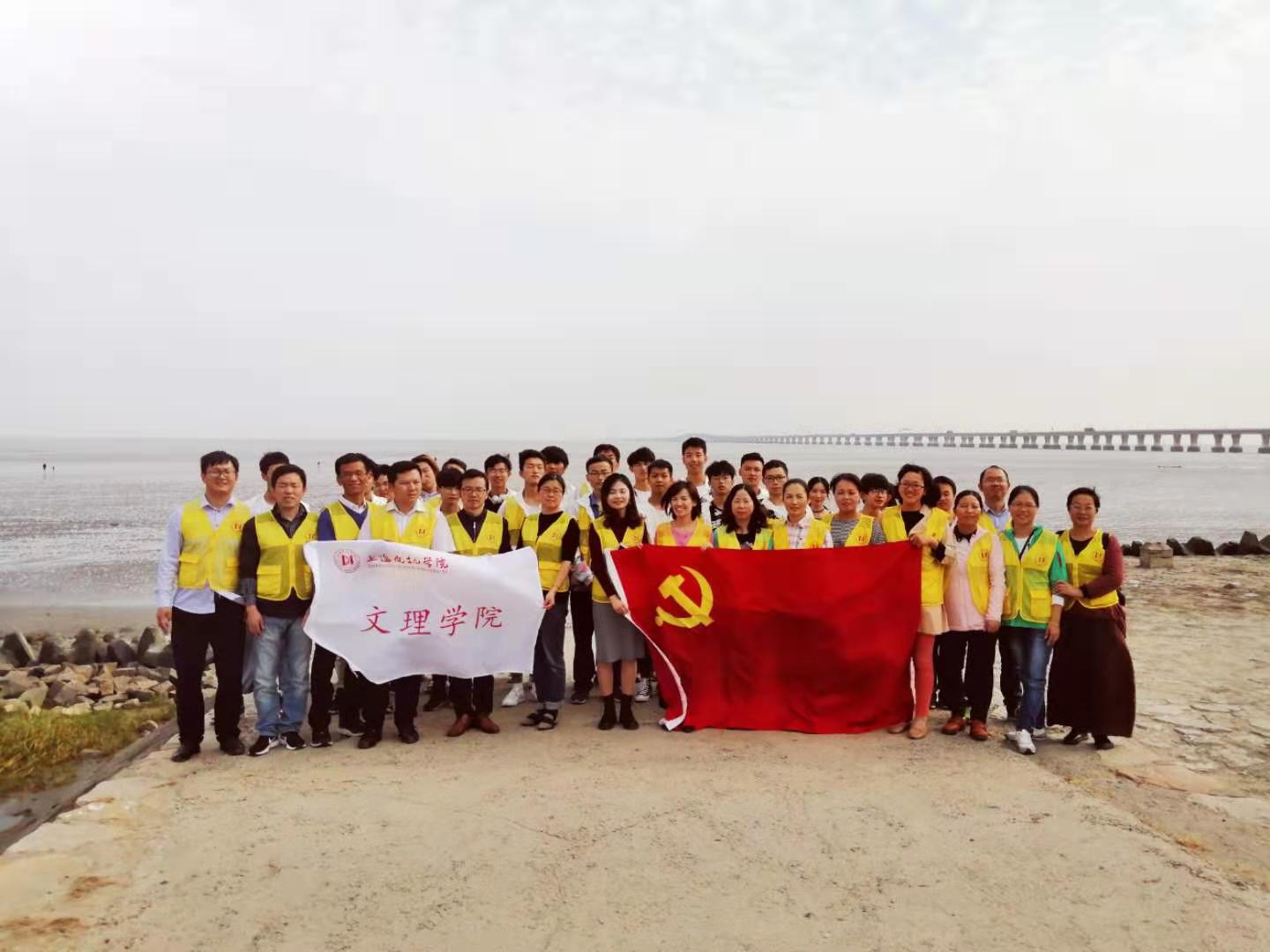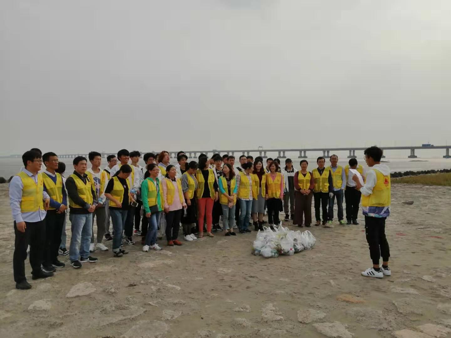 为深入开展“不忘初心、牢记使命”主题教育活动,10月25日下午,beat365英国官方网站组织全体党团员开展了以“清洁海滩,倡导生态文明”为主题的环保志愿服务活动,为党团员提供了一次主题教育的实践机会。党员和团员青年们来到南汇新城“天空之境”清理海滩上的垃圾,并发起“减少海洋垃圾,保护海洋环境,建设生态文明”的倡议书。