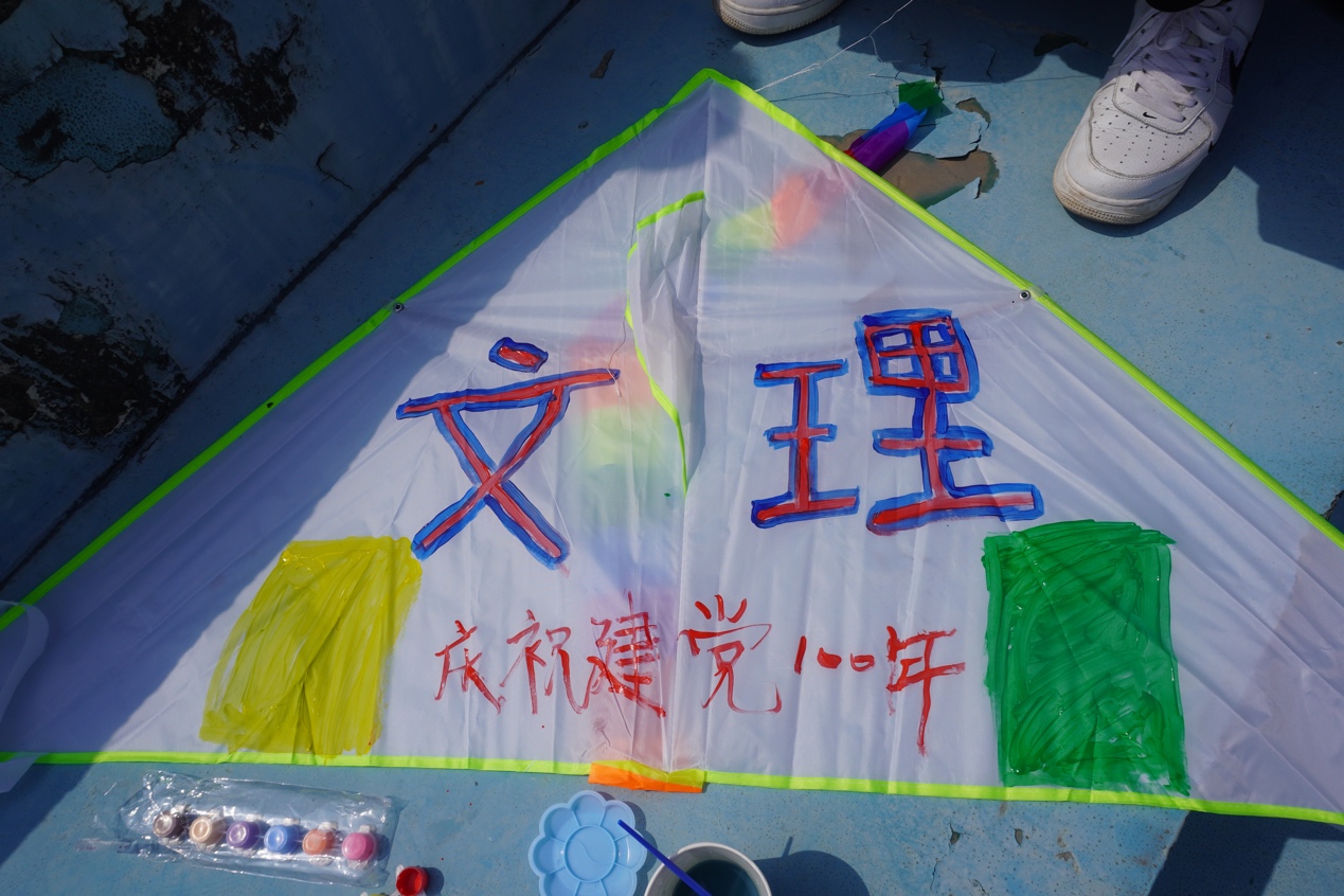 本次风筝大会面向全体在校同学,来自各个学院的同学聚集在操场上,两三人随机组成小组,绘制自己专属的风筝,大家你一笔我一笔,精美的图案不一会儿就呈现在眼前,有画党徽的,有画五角星的,有抒发“一心向党”祝贺建党百年心里话的……。随后,同学们放飞了自己亲手绘制的风筝,风筝的高飞也象征着同学们将自己的梦想送入天空,表达了同学们对过往峥嵘岁月的崇敬和对美好未来的希冀,同时也促进了我校同学间的互动,增进了情谊。