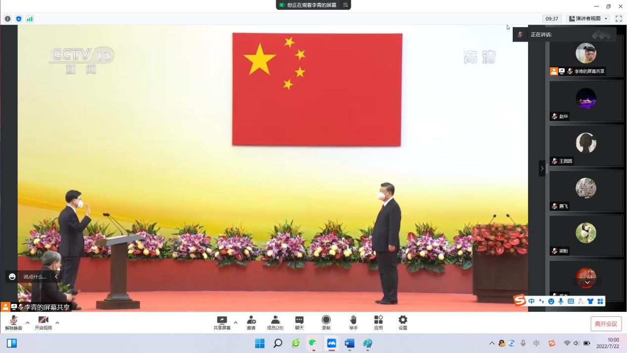 党员老师纷纷进行了交流,相信新一届特区政府一定能够认真贯彻落实习近平提出的“四点希望”,确保“一国两制”实践在香港行稳致远,带领香港迈向“由治及兴”的新篇章。大家表示,作为高校教育工作者,一方面要响应习近平总书记的号召,坚定拥护“一国两制”方针,思想和行动高度统一,支持香港和谐稳定发展;另一方面要立足本职工作,在教书育人的过程中积极引导青年大学生深刻认识国家和世界发展大势,提升民族自豪感和主人翁意识,将自身发展与祖国共融,为建设社会主义现代化强国贡献青年的力量。