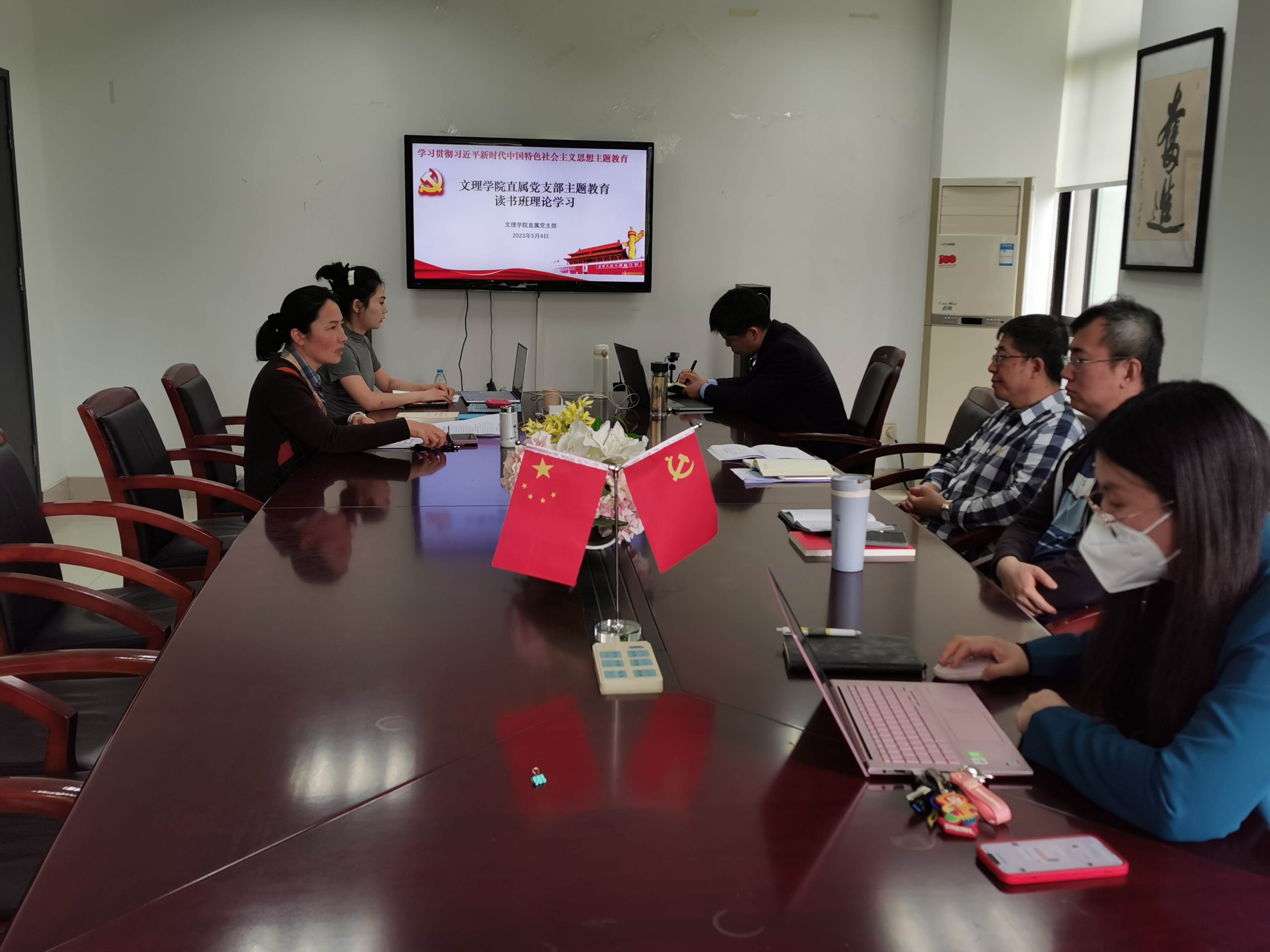5月5日下午,beat365英国官方网站直属党支部组织党员教师开展专题学习,重点学习《习近平新时代中国特色社会主义思想专题摘编》,beat365英国官方网站直属党支部书记康秀珠进行了领学,党员老师们结合学习就如何创新学习形式有效开展理论学习等方面进行了交流讨论。