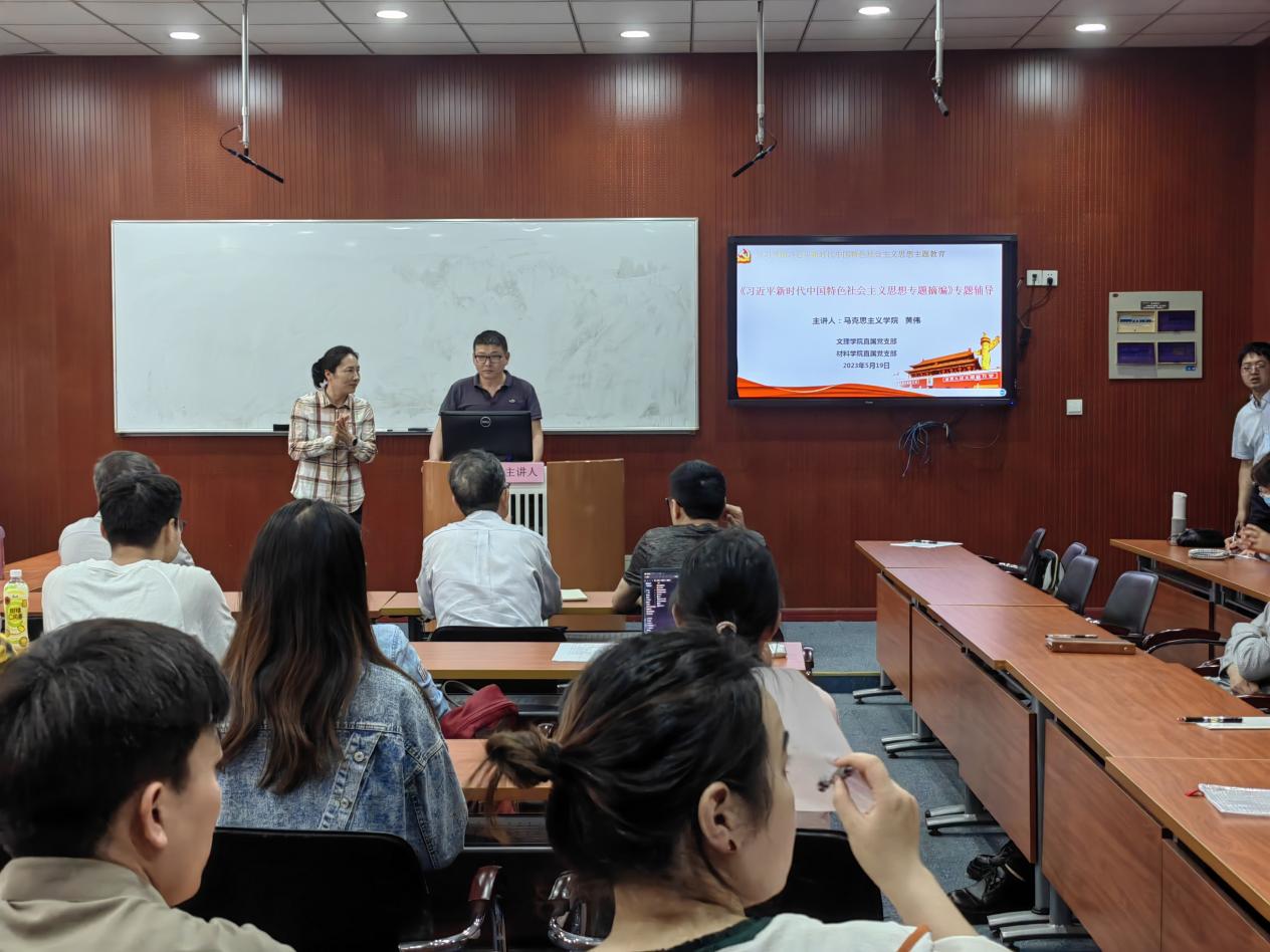 为深入开展学习贯彻习近平新时代中国特色社会主义思想主题教育,5月19日下午,beat365英国官方网站直属党支部与材料学院直属党支部邀请马克思主义学院黄伟作《习近平新时代中国特色社会主义思想专题摘编》专题辅导,集中开展主题教育联组共学。