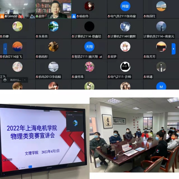作为校园准封闭管理期间,文理学院线上线下主题辅导特色活动之一的物理类竞赛“云宣讲”活动,于4月2日晚如期在文理楼313会议室和腾讯会议上同步举行。院长朱泰英、直属党支部书记康秀珠、物理类竞赛团队指导教师和全校理工科学生共计60余人参加了此次宣讲会。学院赵华老师和李青老师分别担任线上和线下主持人。