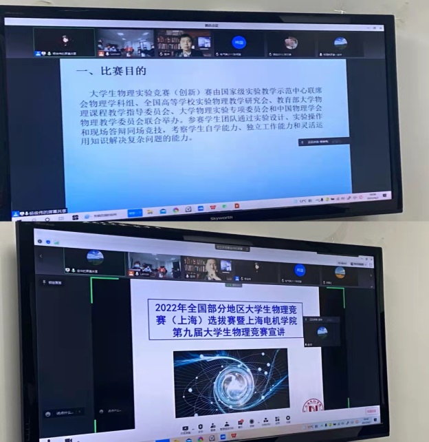 会上杨俊伟老师和金华老师分别对2022年全国大学生物理实验竞赛(创新)和全国部分地区大学生物理竞赛(上海)及相应校内选拔赛的赛事安排、竞赛流程和注意事项进行了解读。竞赛团队的陈国红老师和林璠老师分别就实验竞赛细节和理论竞赛的题型分布作了补充说明。