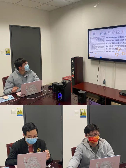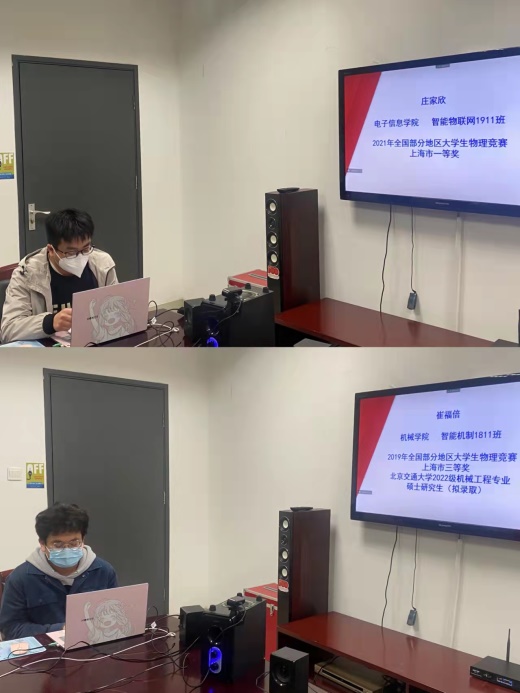 往届竞赛获奖代表机制1914班的陈真宇同学、光电1911班的李胜同学和电气1914班的李亮同学与大家分享了参与物理实验竞赛的心得体会。智能物联网1911班的庄家欣同学、已被北京交通大学拟录取的智能机制1811班崔福倍同学、在上海理工大学读研的原机制1712班的李全全同学着重就竞赛对提升自身学术兴趣及学业成长方面做了分享。