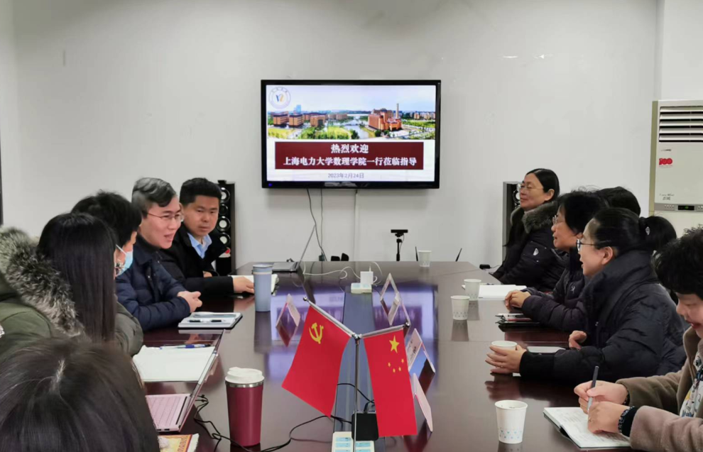 beat365英国官方网站直属党支部书记康秀珠对上海电力大学数理学院一行的来访表示诚挚欢迎,希望双方加强交流交往和资源共享,共同提高办学水平和人才培养质量。