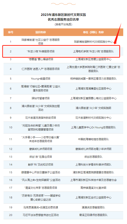 2023年浦东新区新时代文明实践志愿服务项目