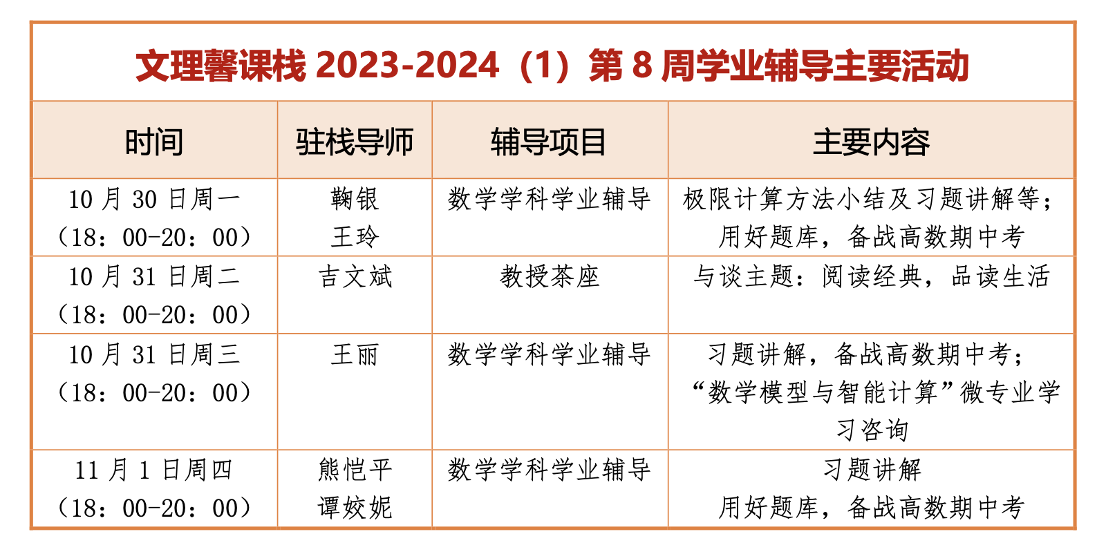 文理馨课栈以打造“师生自由学习共同体”为建设理念,以“博文明理,崇德尚学”为育人宗旨,通过基础课教师及名师工作室进驻学生园区,将课外辅导、科创竞赛、沙龙讲座、社团活动送到学生身边,促进学生文理兼修、全面发展。