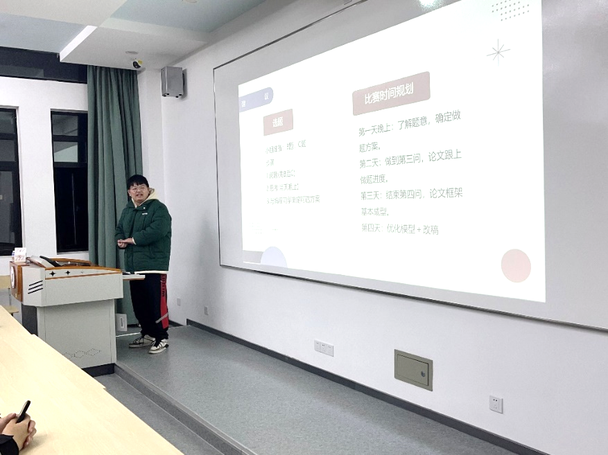 首先,武文佳对2023年全国大学生数学建模竞赛的备赛参赛全过程进行了总结并对新一年的建模比赛进行了展望,我校学生今年获得全国大学生数学建模竞赛国家二等奖2项、上海赛区一等奖2项、二等奖2项、三等奖2项的佳绩,创造了近五年的最好成绩。