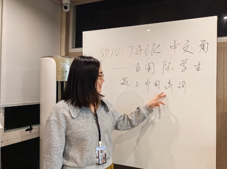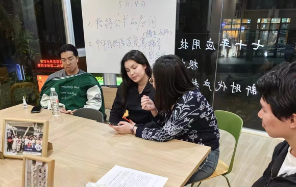 4月16日,来自博茨瓦纳、俄罗斯、菲律宾等国家的国际学生与中国学生一起来到文理馨课栈,开展本学期“SDJU TALK”中文角活动——“当国际学生遇上中国古诗词”,弘扬中华诗词魅力,培养留学生学习汉语的兴趣,提高国际学生汉语运用能力。